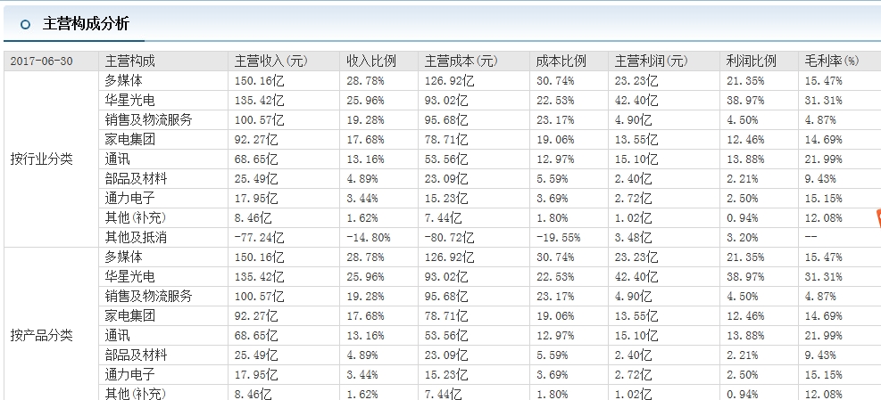 正是习惯了,很多黑电企业都认为靠规模能取胜,能吸引市场人气。所以进入白电市场后,有些企业就选择低价促销的方式。比如以白电为主业的TCL家电集团的2017年上半年的毛利率仅有14.69%,相比2016年全年和上半年17.98%和17.32%的毛利率讲,让利幅度明显。而作为TCL四大主营业务的家电集团,其毛利率也是低于多媒体、华星光电和TCL通讯的。而横向比,TCL白电的毛利率与白电巨头海尔、格力等动不动就30%以上的毛利率相比,更是可望而不可即。