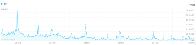 ▼ 2012年以后,DNF的百度指数一直在稳定下跌: