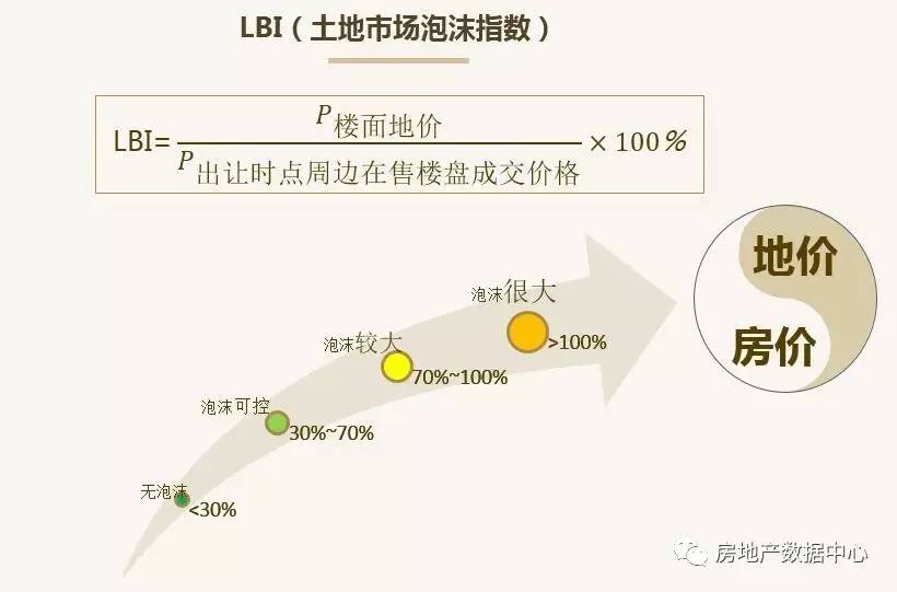 目前房价的组成中,地价占比很大,泡沫目前也集中在拿地环节,存量市场的泡沫相对较小。地价与房价之间一定关联,只有当地估价师可以对地价以及实现地价可能的房地产售价进行精准把握。LBI正是基于对房价和地价关系的精准把握的产物。中估联数据特色产品LBI基于中估数库(全国房地产核心数据库),是全国首个土地市场价格泡沫的指数。根据LBI可以测算出土地开发风险,中估联数据董事长许军指出,这里的开发风险是说在哪个水平的土地上拿地,体现的是短期风险。