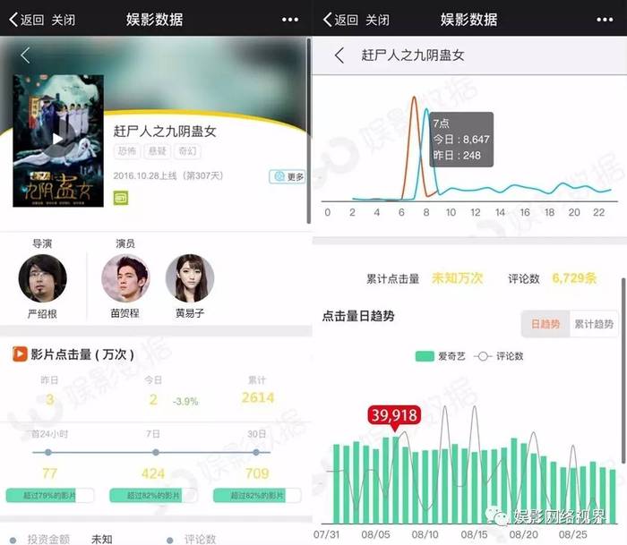 娱影数据系统显示,目前这部影片已经上线307天,每天还能获得几万的点击量。