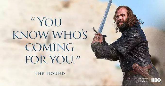 猎狗在第七季最后一集和魔山见面时说过:“记得我吗?你肯定记得。你现在比我丑,他们都对你做了什么?你知道谁会来找你吗?你一直都知道。”