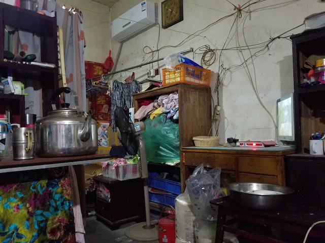 卧室拥挤不堪。但这个时节,室外太热,他们只能在屋里吃饭。