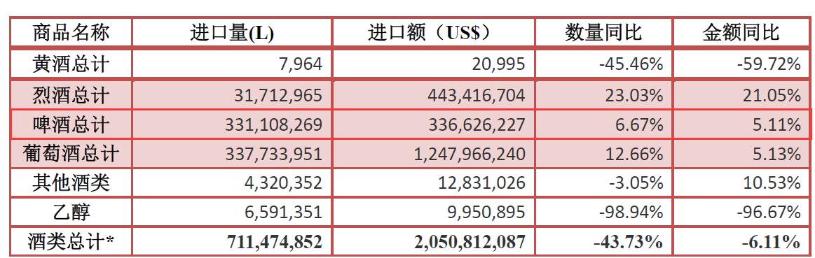 ▲中国食品土畜进出口商会酒类进出口商分会发布的2017年1-6月进口酒类数据。