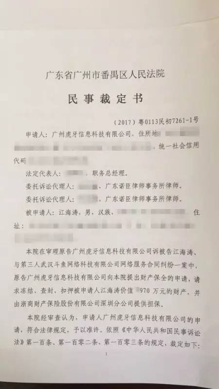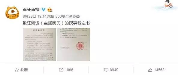 随后虎牙发布微博称“相信嗨氏会继续留在虎牙直播”。停播几天后,嗨氏发布微博表示将转投斗鱼。虎牙方面表示,嗨氏与虎牙的合同签订至2018年1月31日,嗨氏单方面宣布离开虎牙,已构成单方面违约。随即将其起诉。在嗨氏单方面违约的第二天,虎牙官方宣布,其4970万资产将被冻结。