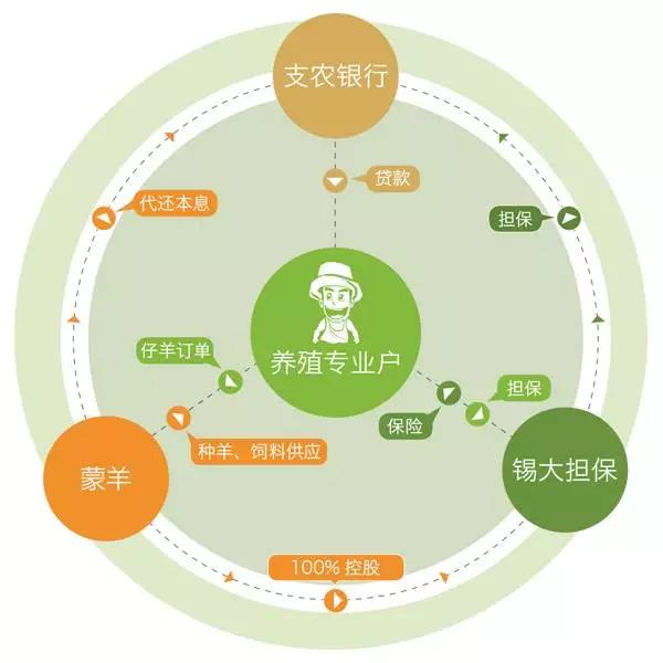 而这也正是蒙羊设计的“羊联体”带给农牧民的极大福利。所谓“羊联体”,采用“基地+农户+公司+银行+担保公司+保险公司”的模式,创新地引入了保险公司的金融要素。在这个模式下,过去处于劣势中的养羊户在市场议价中终于有了话语权。2013年,杭锦旗锡尼镇浩绕柴达木嘎查牧民吉木斯和她的牧场就是“羊联体”的受益者。在蒙羊牧业的帮助下,她的基地规模达到了肉羊存栏10000只、年出栏30000只,有效解决了当地肉羊养殖技术难、销售难的问题。