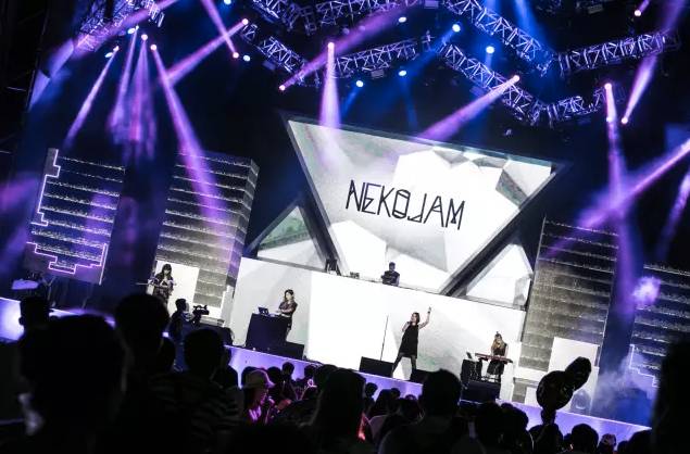 接棒摇滚电气的是DJ Mykal a.k.a 林哲仪与妮可酱的躁动时间,此前一直在后台与舞台对面调音台之间来回奔波监督控场的“Mykal哥”似乎丝毫没有疲惫,演出至高兴处直接跳上DJ台和观众拍手互动,结尾处妮可酱也为场下带来了有别于力量碰撞的轻灵流行电音。