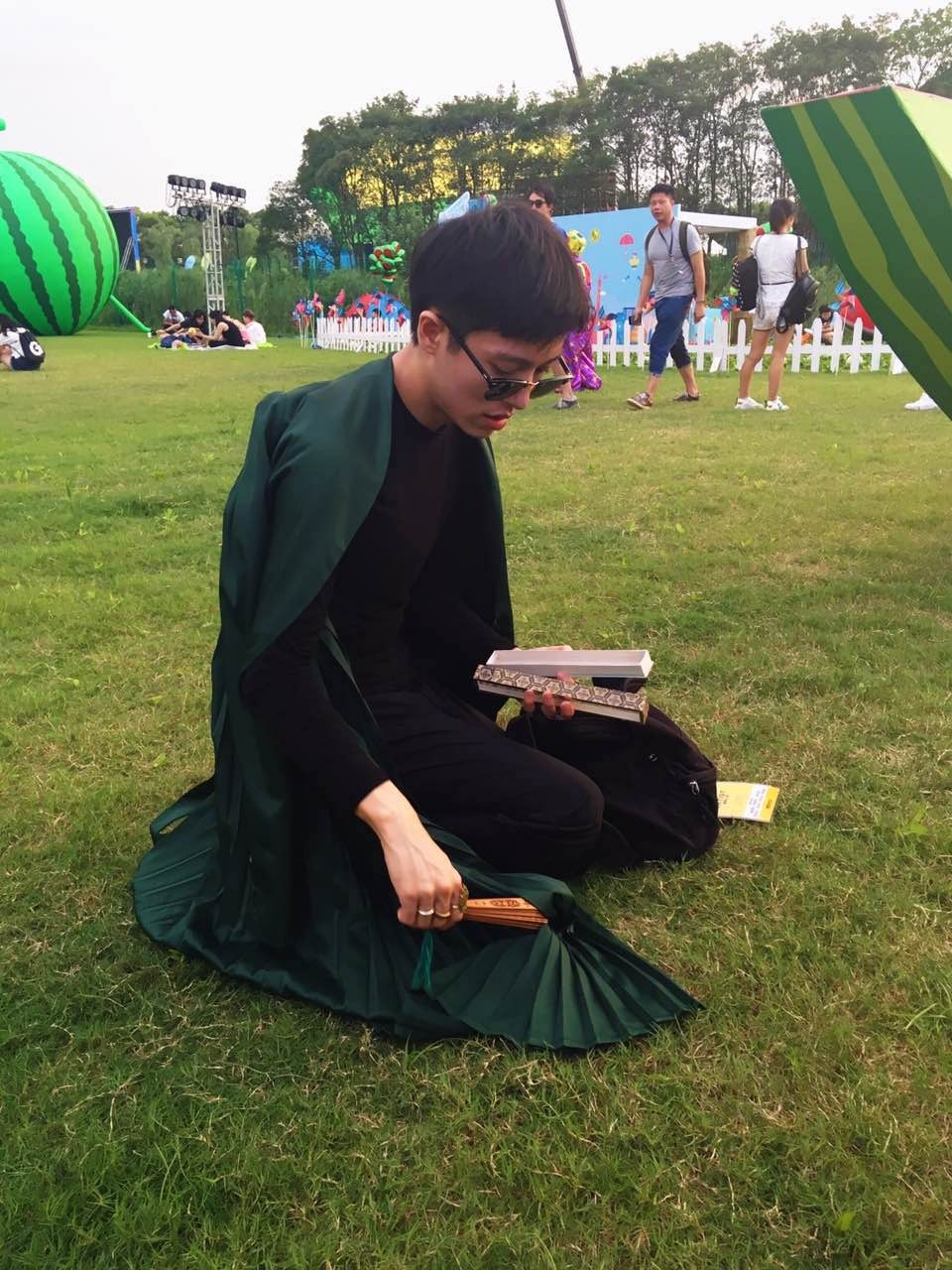 “很少见到像比比这么坦荡的人了。他说话会看着你的眼睛,有什么说什么,也不掩饰自己的爱憎分明。我知道他是天秤座,心思细腻敏感,我看他有在细心观察每一个人,和他对视甚至会有种自己被看穿的感觉,一切在他面前无所遁形。”指甲说这次最大的收获,是邱比主动问他们还有什么想看的演出,然后陪着他们去看了The Fratellis——虽然他好像并不喜欢太吵闹的音乐,只是为了和乐迷们在一起聊天,从新专辑聊到日常想法与品味好恶,以及为什么会剪掉长发,“就像老朋友一样,最后分别时,比比和我们每一个人拥抱,给我们祝福。”在此期间,有乐迷送了他一把自己外公亲手做的檀香扇,邱比小心地用自己的演出服衬着,很是爱惜,这一幕被指甲偷偷拍了下来。