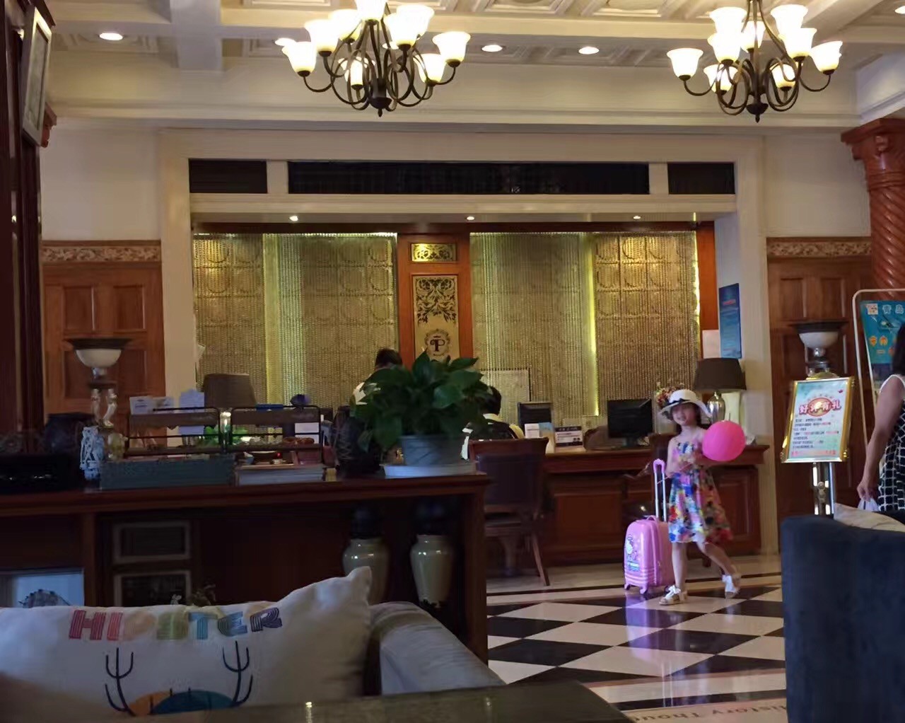 在王子饭店等朋友,看见一位先生带了一位5岁左右的小女孩到前台办入住手续。服务员在给这位先生办手续的同时,另外一位服务员拿起一个粉色的气球送给小姑娘。小姑娘拿起气球在大厅蹦哒起来。