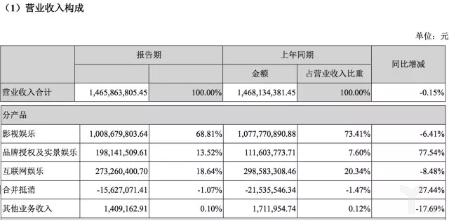 不同于完美世界游戏业务的强大营收,华谊兄弟上半年尽管实现总营业收入14.66亿元,较上年同期下降0.15%。其中归属于上市公司股东的净利润为4.3亿元,较上年同期上升42%。但由于其上半年电影业务整体的颓靡,其中主要盈利完全依靠出售资产。
