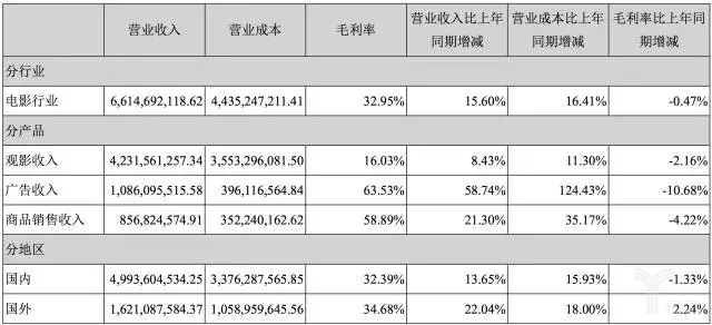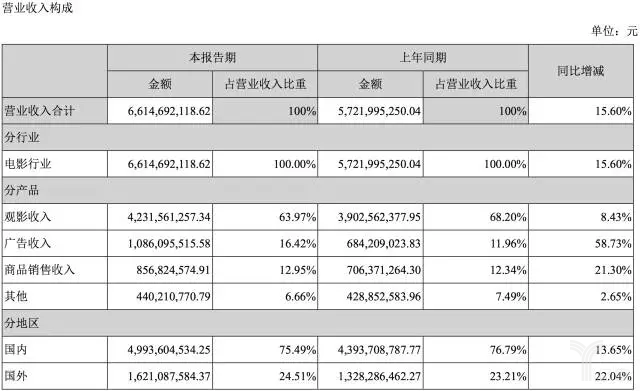 上半年经历了更名、停牌拟收购的万达电影,上半年实现总营业收入66.17亿元,较上年同期上升15.6%。其中归属于上市公司股东的净利润为8.87亿元,较上年同期上升10%。值得注意的是,万达在电影行业的毛利率为15.6%,出现了0.47%的下滑。分产品中,观影收入的毛利率也下滑了2.16%,降至8.43%。
