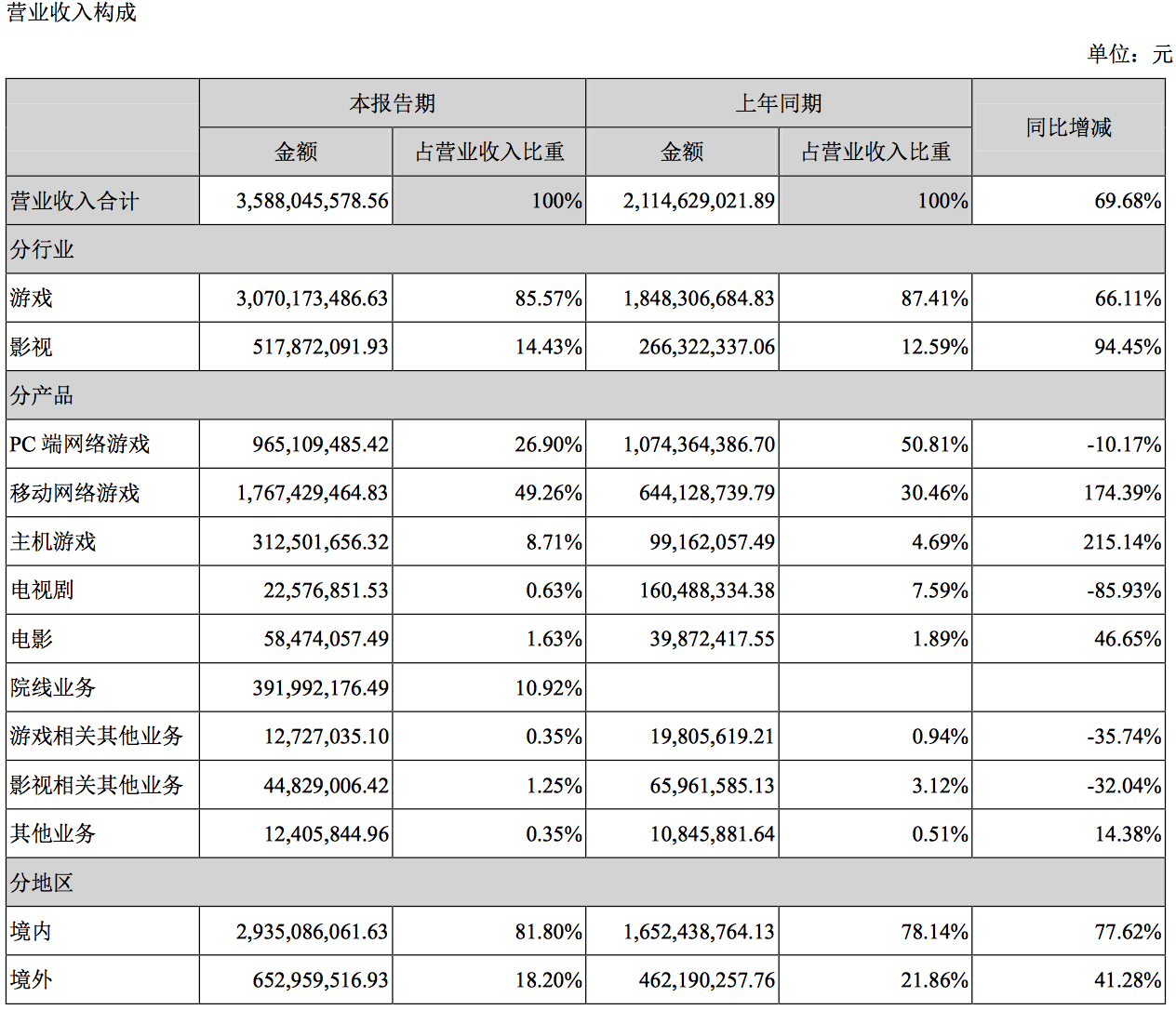 相比之下,光线传媒上半年实现净利润4亿则更多依靠传统影视业务的良好发展。其上半年实现总营业收入10.29亿元,较上年同期上升42.62%。其中归属于上市公司股东的净利润为4亿元,较上年同期上升24.61%。