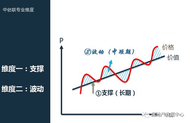 这个图可能大家都很熟悉,根据马克思的理论,价格是围绕价值上下波动的,价值有它特定的决定基础。所以我们今天的分析有两个维度,第一个维度我们会讲这根黑色的线,是什么在支撑城市的房地产价值的上涨?第二我们找这根红色的线,是什么在影响价格的波动?这个波动是不是合理的?