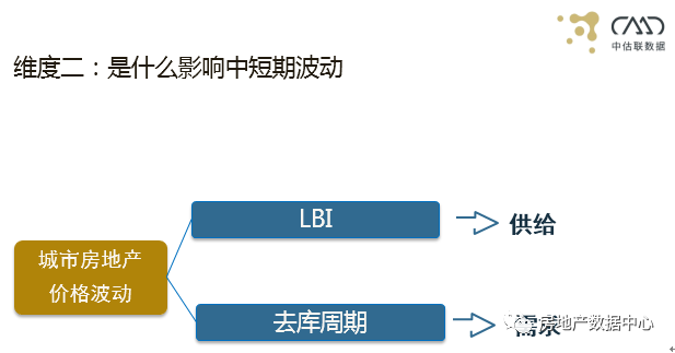 接下来我介绍一下我们在房价分析时候使用的第二个维度,这个维度比较专业,我大概介绍一下,第一个是LBI。现在很多机构在做分析的时候主要是价、量,深度的分析很少看到,而我们这块是对价和量做了综合分析。LBI是通过供给端来影响整个房地产市场的波动,去库周期主要是影响需求。