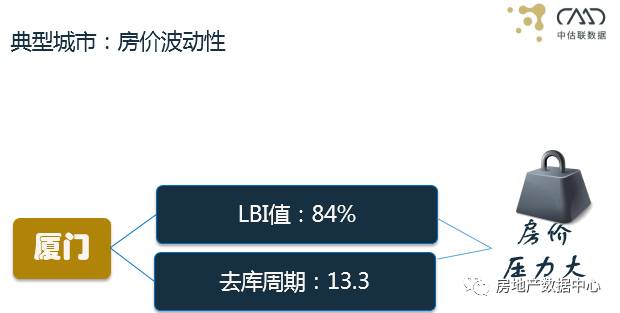 首先LBI值,厦门是我们非常关注的城市,关注房地产数据中心公众号的用户都知道,最近半年的LBI值达到84%,这是一个非常高的数值。第二是它的去库周期,上半年去库周期是13.3个月,这也是相对比较高的数值。