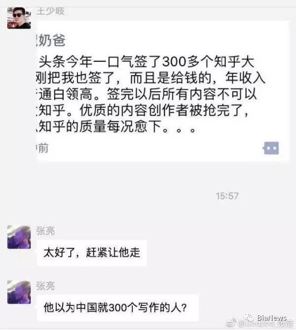 对此,知乎联合创始人张亮表示不以为意,甚至鼓掌欢送:“太好了,赶紧让他走”、“他以为中国就300个写作的人?”