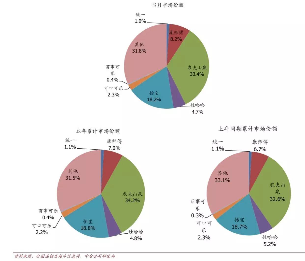 据中金公司今年早些时候发布的《3月零研月报》显示,在其调研的渠道中,可口可乐在包装水市场的份额(根据销售额算)在今年一季度约为2.3%,排在农夫山泉、怡宝、康师傅和娃哈哈之后。
