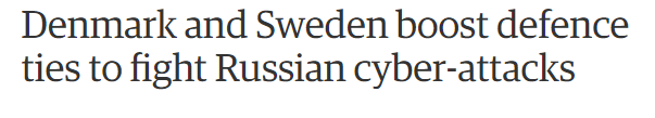 【丹麦瑞典加强合作 抵御俄罗斯网络攻击】丹麦和瑞典两国防长在斯德哥尔摩会谈前发表一项联合声明,共同表示为了抵御来自俄罗斯日益严重的网络攻击,两国决定加强合作,携手打击假冒和虚假信息,增加传统军事合作。