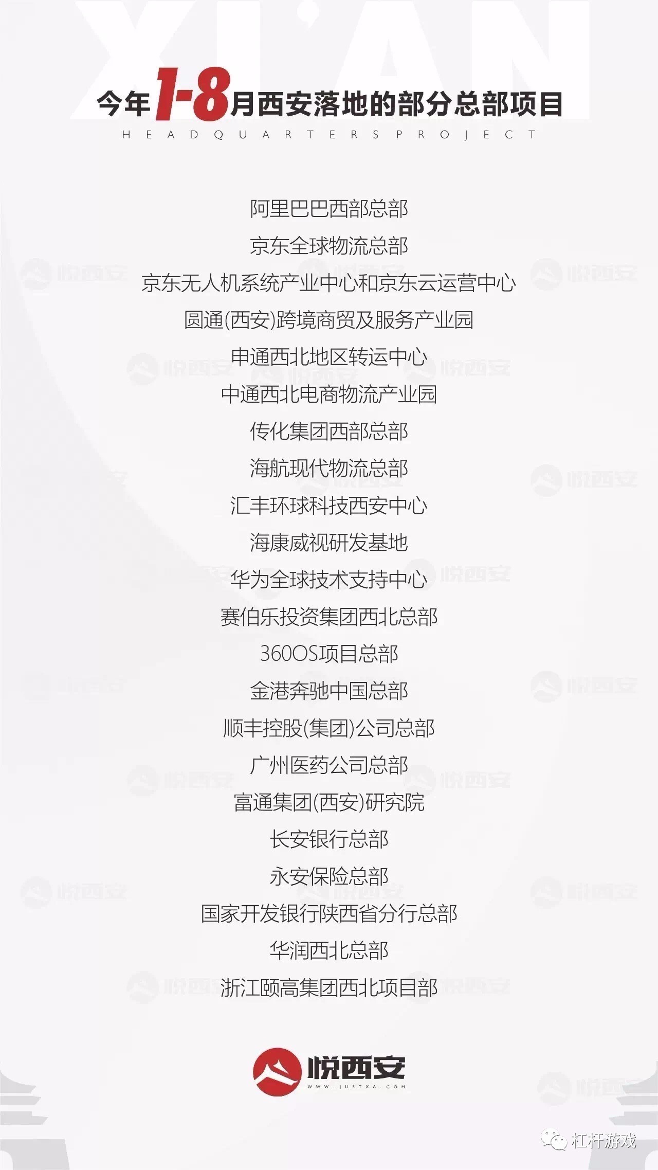 图1.2017年1-8月西安主要落地总部清单(ps,第一项应为阿里西北总部) 图表来源|悦西安
