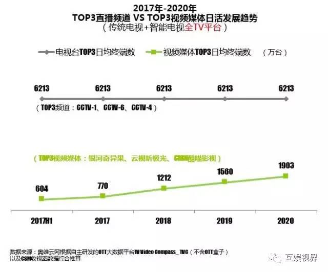 - 2020年,BAT视频媒体在全TV平台的日活规模将达TOP3直播频道的30%,成长空间巨大