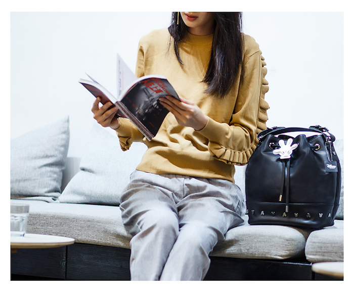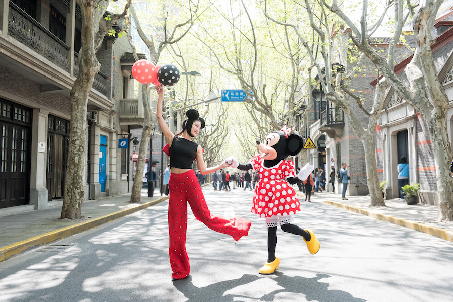 为了新店开幕和时尚新产品线,迪士尼从半个月前就开始造势。你也许在上海某处见过装饰着米奇耳朵或是米妮蝴蝶结的摩拜单车。尽管当时的公众关注点大多放在摩拜与迪士尼的联名合作上,其实官方宣传图中,单车把手挂的帽子和模特背后的包就是迪士尼即将发售的时尚新系列。