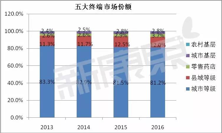 随着药品零加成、分级诊疗、基层首诊等医改政策的执行,城市等级医院的市场份额逐渐缓慢下滑,而受医药分家、处方外流、高价药(新特药)渠道转移等政策的影响,零售药店的市场份额逐步提高。