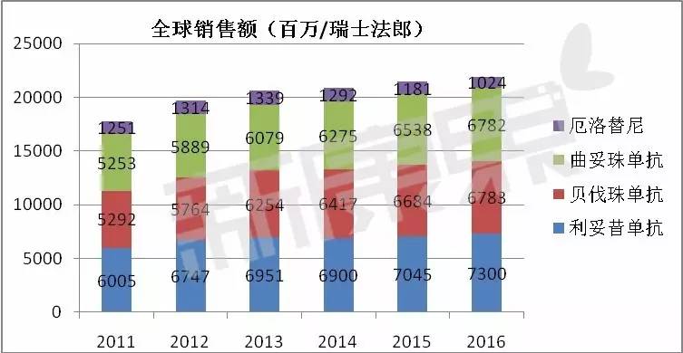 随着恶性肿瘤发病率和死亡率的逐年增加,肿瘤治疗需求越来越大,抗肿瘤药物市场得到迅猛发展。在抗肿瘤药畅销品种方面,国际上以生物单抗、小分子靶向药和激素类抗肿瘤药为主流,其销售额高,增长速度快;而在我国这几类药物还处于崛起阶段,有很大的市场增长空间。