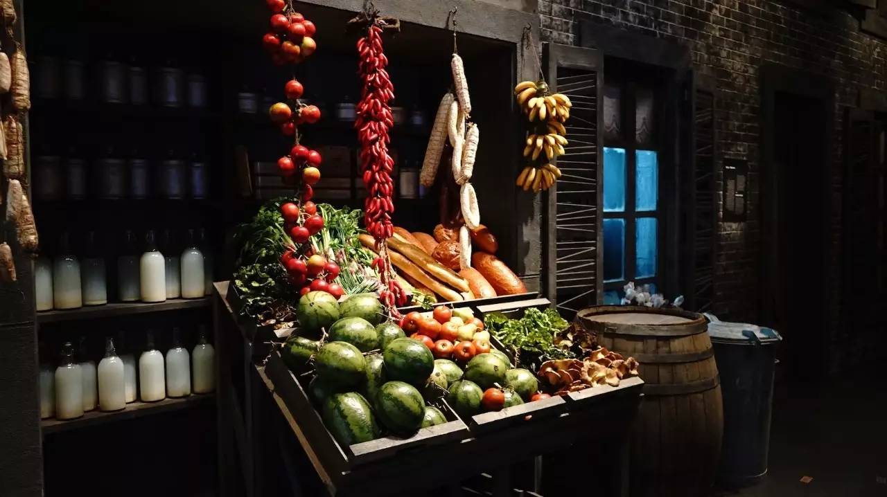 影片过后幕布打开,一条街道出现,这是卓别林出生的街道,有他少年时流连的水果摊——总是吃不饱饭的他,花红果绿的水果摊简直是他梦想,他的母亲的蜡像雕塑,他童年时的穷困在他今后的电影当中也可以看见,他总是一个小人物,在和大人物对抗和周旋当中不断有新的笑话发生,这,可能是他童年的缩影。
