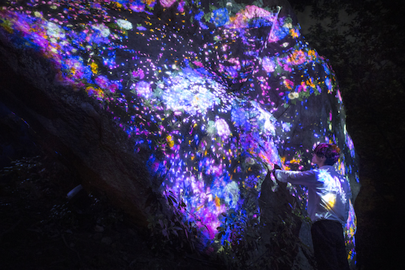 这一展览位于日本南端佐贺县武雄市的御船山乐园里,当红日本数字艺术创作团队以树木、岩石等自然景观为主题,用数字投影技术创作了14项作品。