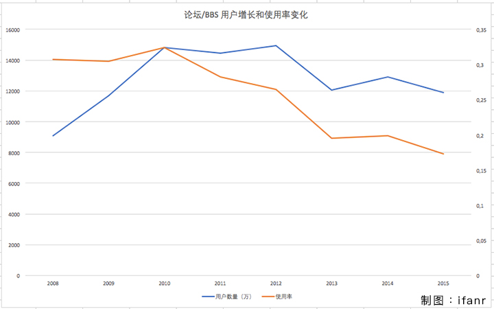 如果按中国互联网络信息中心(CNNIC)的数据统计,BBS/论坛走向衰落是从 2009 年开始的,那一年是这类服务使用率首次出现下滑,为 30.4 %。但事实上,早在这之前,各种 BBS 和论坛就已经显露出了颓势。