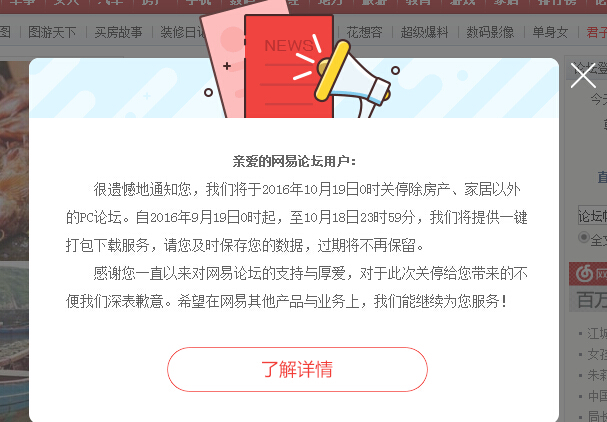 2016 年,网易论坛关闭