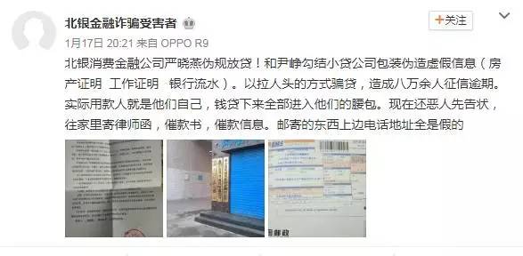 最后一句:接到银监会罚单之后,北银消费金融一直未发声,但拉人头骗贷的风波依旧在发酵,而网上的维权行动也从未停止。