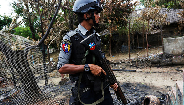 据界面新闻此前报道,8月25日,武装分子在若开邦用自制炸弹对30个警察哨所和一处军事基地发动连环袭击。