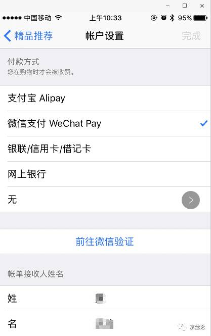 设置过程非常简单:用户仅需在上述账户设置页面选择“微信支付WeChat Pay”,并前往微信验证,验证成功后将直接跳转回账户设置页面即可完成。设置成功后,微信支付用户购买 app、游戏和订阅音乐的方式将变得快捷又安全。