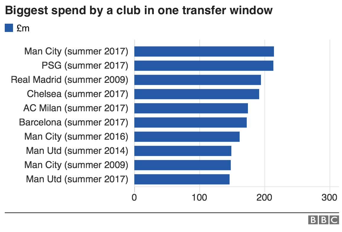 他买任他买,我是蓝月亮 - 若问谁是今年夏季转会窗口花钱最多的球队,很多人的答案可能是巴黎圣日耳曼,AC米兰或者切尔西。但最终的答案令人惊讶,曼城才是今年夏季转会窗花钱最多的球队。曼城今年花费了超过2.15亿英镑购买了7名球员,以微弱的优势超过大巴黎站到了土豪榜的榜首,并且,曼城也创下了欧洲足坛夏季转会历史上单个俱乐部支出的最高纪录。