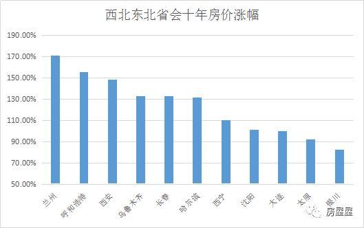 房价涨幅垫底的城市里,东北三大省会(沈阳、哈尔滨、长春)全部在列,而西北城市(西安、兰州、乌鲁木齐、西宁、银川)也几乎无一遗漏。
