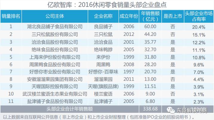 三年前今日资本分别投资了良品铺子和三只松鼠,最近亿欧智库《2017中国休闲零食行业研究报告》的研究报告,可以一览休闲食品领域的竞争格局和趋势。