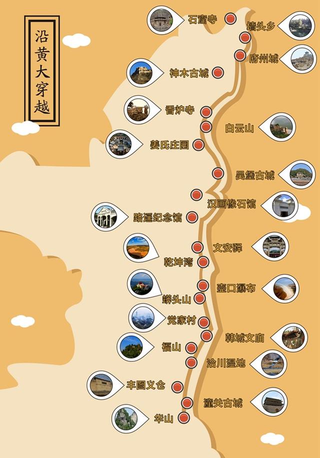 据悉,该公路全长约828.5公里,北起府谷县墙头乡、南至渭南华山、纵贯榆林、延安、渭南、韩城4市12县、9条高速、13条国省干线,将壶口瀑布、洽川湿地、华山、党家村等50多处旅游景点串联起来,是沿黄经济带和旅游带的重要依托。