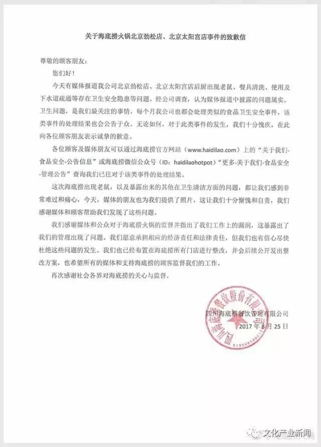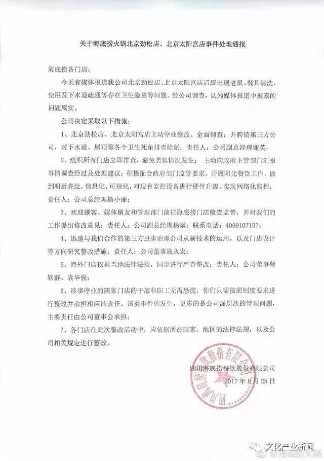 海底捞再发《关于海底捞火锅北京劲松店、北京太阳宫店事件处理通报 》。5条整改措施,每条都由公司高管甚至董事挂帅。