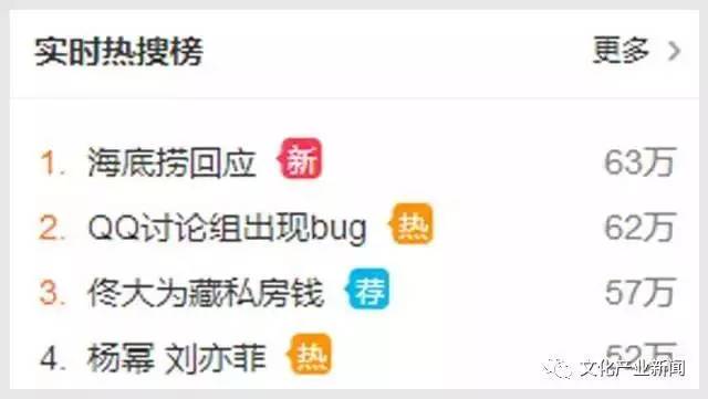 “海底捞回应”的消息上了新浪微博热搜第一位: