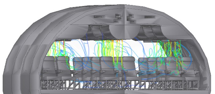 在当前大部分的民航飞机上,空气是以这样的方式流动的:机舱外的新鲜空气被引擎吸入飞机内,经过升温、升压和清洁过滤后与机舱内原有循环后的空气混合在一起,又被分散到以每三到七排划分开来的一个个机舱区域内,经人呼吸后又成为废气被收集起来,最终排出机舱。