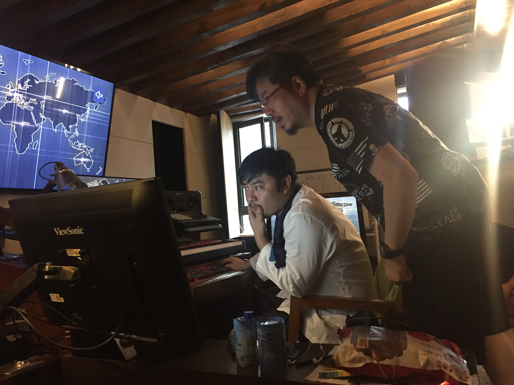 在歌曲编排上,黄国伦心中很有谱。他一会儿站,一会儿坐,这首要飘,那首要强烈,这首要拉长前奏,那首要加配器,说得很亢奋。有时,他跟着小样高声唱起来,微闭双眼,抬起一条胳膊画波浪。他也偶尔讲讲冷笑话,大声喊穿和服的刘洲“来份刺身”,或者宣称要请郎朗来弹钢琴,因为他的歌“朗朗上口”。工作室里的气氛轻松愉快。