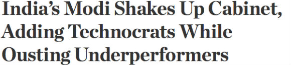 【印度总理希望引进技术人才进入内阁】印度总理莫迪周日表示将辞退表现不佳的内阁成员,引进一些非政治背景的技术官僚来提振经济和他在党内的声望。