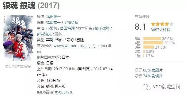 最后,一个让广大银魂粉们自豪的消息——本次《银魂》的引进是日漫改真人电影在国内最大规模的一次公映,届时将会有8000多家影院播放,上映的银幕数是日本的三倍!!(日本3400块)