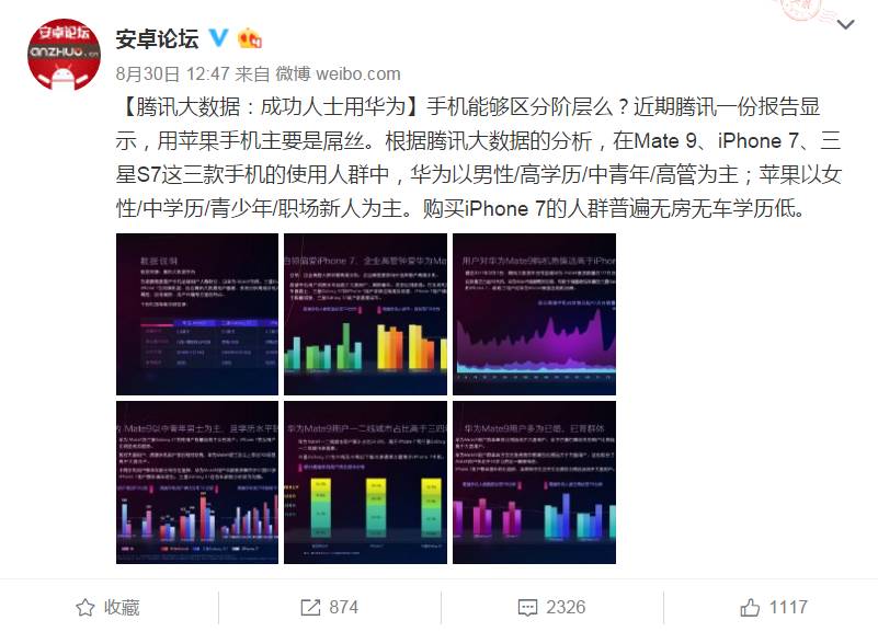 暂且不质疑报告的真实性,一部通讯工具,竟然还能跟人的社会阶层甚至有房没房挂上钩?虽说华为这两年手机卖得不错,但要说用苹果的年轻人多没买房,明显太以偏概全。