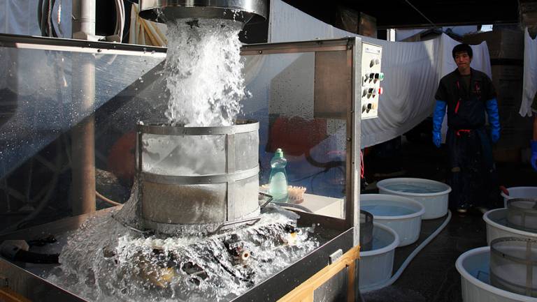 喜久水酒造在1875年由平泽喜三郎创立。他们窖藏清酒的地方很特别,是秋田县能代市一条登录了国家重要文化遗产的废弃隧道。这条隧道全年保持在11度左右,湿度恰当,对于清酒熟成非常理想。