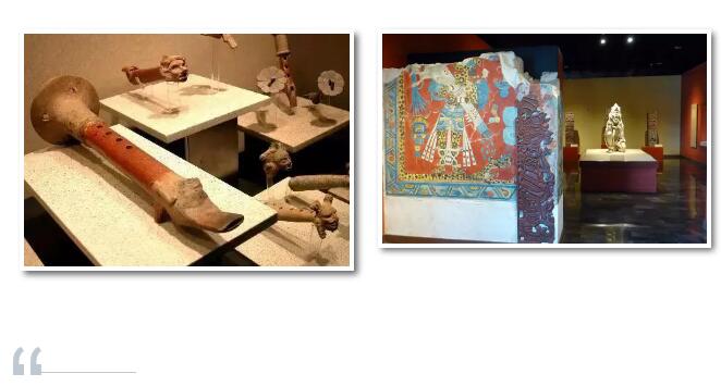 第二楼的展厅在位置上基本与一楼对应,通过服饰、乐器、武器、宗教器皿和生活用具等多种文物详细的说明了墨西哥各民族的文化、艺术、宗教和生活方式等情况,你可以在一楼了解了墨西哥古城曾经的宏伟样貌后,来到二楼对应区域的展厅,了解当时人们各方面的生活情况。