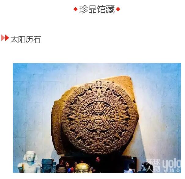 太阳历石直径3.6米,重达24吨多,是博物馆名副其实的镇馆之宝,位居博物馆入口正对面最显要的位置。墨西哥人类学博物馆的建立,就是始于“太阳历石”的发现与保存。由于它在考古学上的意义如此重大,以至于墨西哥人将它当作第二个国徽!