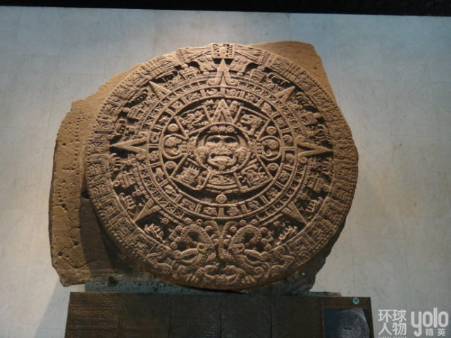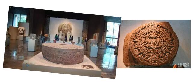 阿兹特克人的太阳历石,是墨西哥人独特的创造,它被雕刻在一座巨石上,很像一个圆盘,它是墨西哥人奉献给太阳神的一块纪念碑,它本来装饰在诺提特兰神殿的墙上,西班牙人破坏了神殿,而太阳历石却奇迹地留存下来,1790年再度被发现后,收藏于博物馆中。