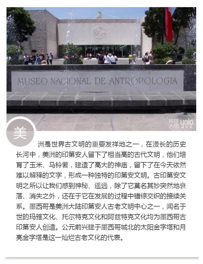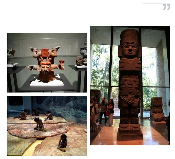 墨西哥城有各类博物馆和展览馆,展示着墨西哥数千年来在各个领域创造的辉煌文明。文物,是历史的见证者,是前人留给我们的第一手资料。史书或许可以含糊其辞,但沉默的文物却会带领我们接近最真实的过去。墨西哥国立人类学博物馆就以其丰富的藏品和独特的风格,成为最具代表性的墨西哥博物馆之一,徜徉在博物馆中,犹如进入了印第安文化遗产的宝库。