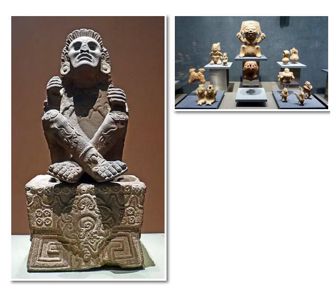 玛雅文化馆和阿兹特克文化馆是一楼最为重要的两个展厅,其中收藏的展品是这两大印第安文明的集中体现,如彩绘人像锅、彩绘陶锅、美洲虎翁、玉米神像香炉、笑面人像、人面纹香炉、雨神像瓮等大量藏品,无一不是玛雅文明遗留下来的珍品。而重达24吨的太阳石,则成为阿兹特克文化昔日辉煌的留证。